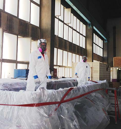 - Aislar las operaciones y utilizar ventilación de extracción localizada con filtración de aire de presión negativa y filtros de partículas de alta eficacia en la zona de remoción de asbesto.